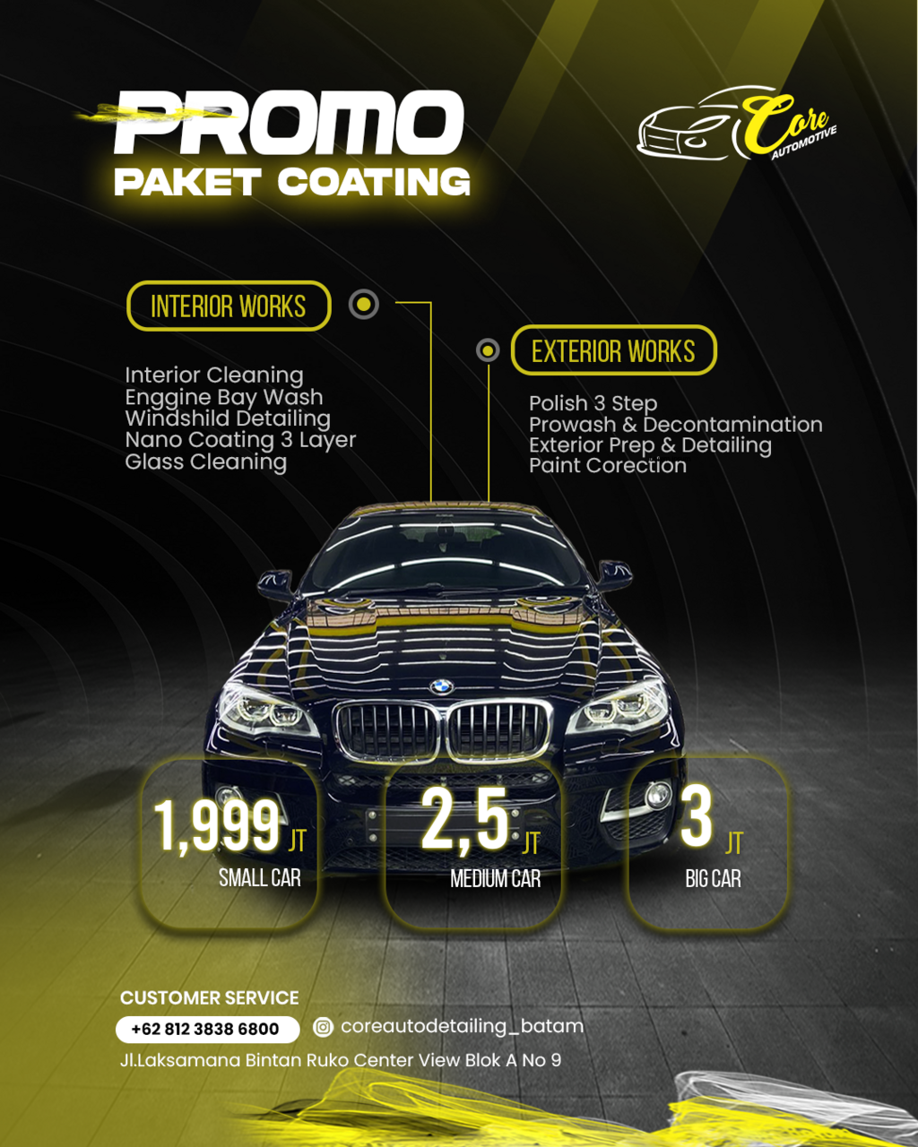Setiap detail kecil mencerminkan kualitas besar itulah komitmen Core Auto Detailing.