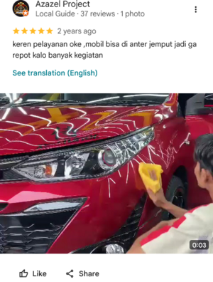 Dengarkan pengalaman nyata dari pelanggan kami yang telah merasakan perawatan mobil berkualitas premium, dari detailing interior hingga perlindungan cat dan finishing poles.